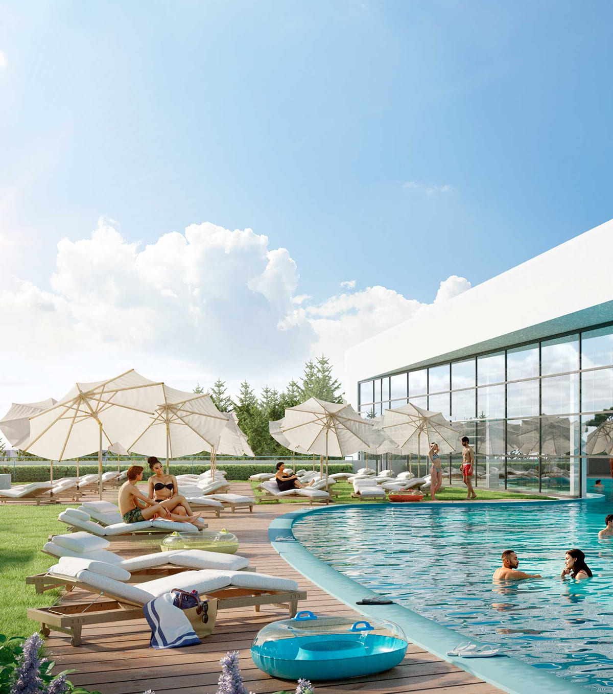 Парящий бассейн в Баден-Бадене Сысерть поражает своей элегантной архитектурой, словно левитируя над пейзажем, и приглашает окунуться в атмосферу роскоши и умиротворения.